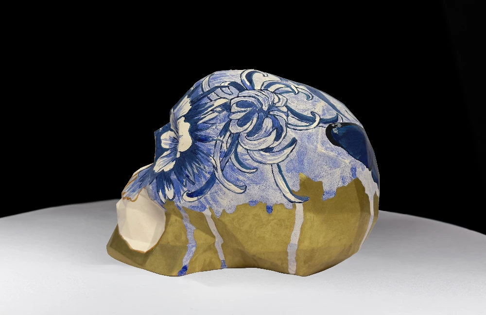 Visual artist and illustrator born in Barcelona in 1983, her work explores the human experience through surrealist female figures and a deeply personal symbolic language. Butterflies, present in many of her pieces, evoke fragility, transformation, and strength: subtly illuminated against dark backgrounds, they guide the viewer into unconscious realms. Her work, influenced by Japanese art and fantastic illustration, addresses themes such as personal transformation, femininity, and resilience in the face of social pressures. In P(ART), Alba brings this poetic and symbolic universe to her intervention on the Skul(p), imbuing the shared piece with an intimate sensitivity and a visual strength that dialogues with the other voices of the project.