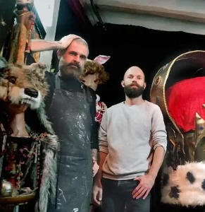 Hocicoyastas is a creative studio founded in Barcelona by Fernando Romeo and Daniel Illig, specializing in scenography, special effects, costume design, and photography. With backgrounds in sculpture and design, they develop projects for fashion, theatre, and advertising, collaborating with brands such as Primavera Sound, Teatre Lliure, and Teresa Helbig.